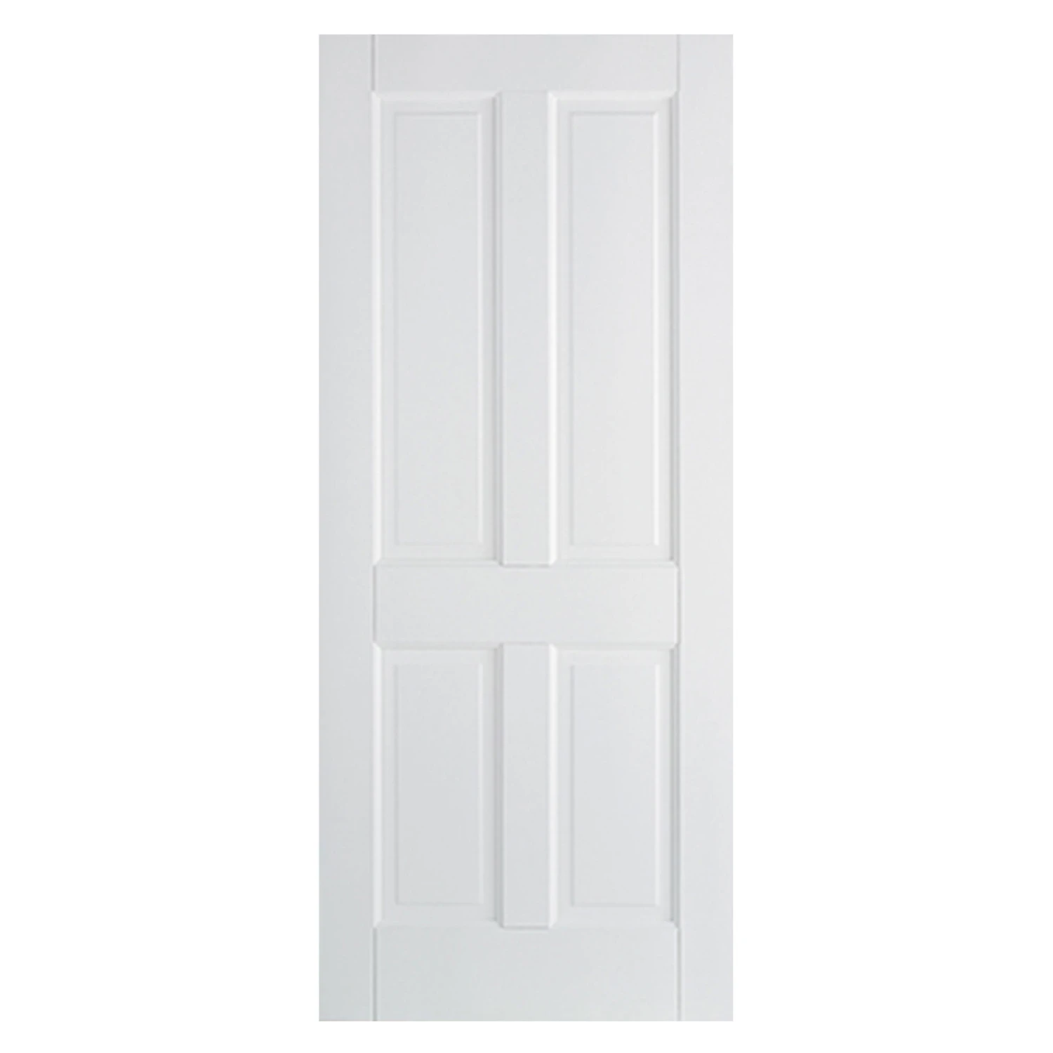 The classic Canterbury door design features four rectangular raised shaped panels with a primed solid core and a white finish.