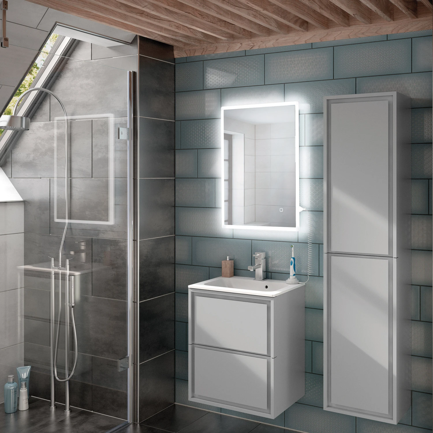 The HIB Vega 50 Mirror is an LED-illuminated bathroom mirror with a contemporary backlit effect. This luxury mirror has a heated pad that helps to clear condensation from the central area of the mirror, and a sensor switch so the light is simply turned on and off by a wave of the hand. Being IP44 rated, it is suitable and safe for use in the bathroom and features a built-in charging socket, which is ideal for charging shavers, trimmers and toothbrushes.