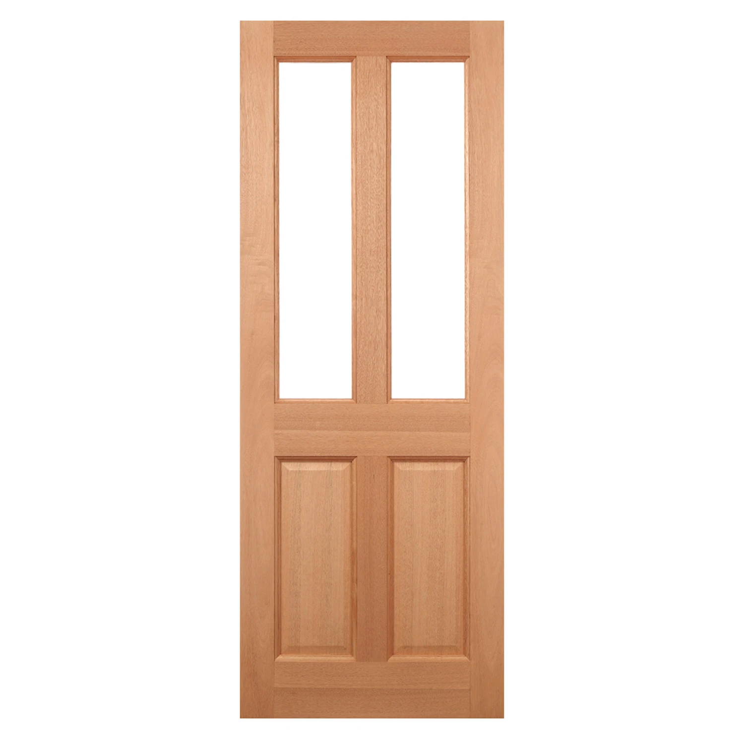 Two clear double glazed panels are positioned above raised shaped rectangular panels in this Malton door design, crafted from hardwood.