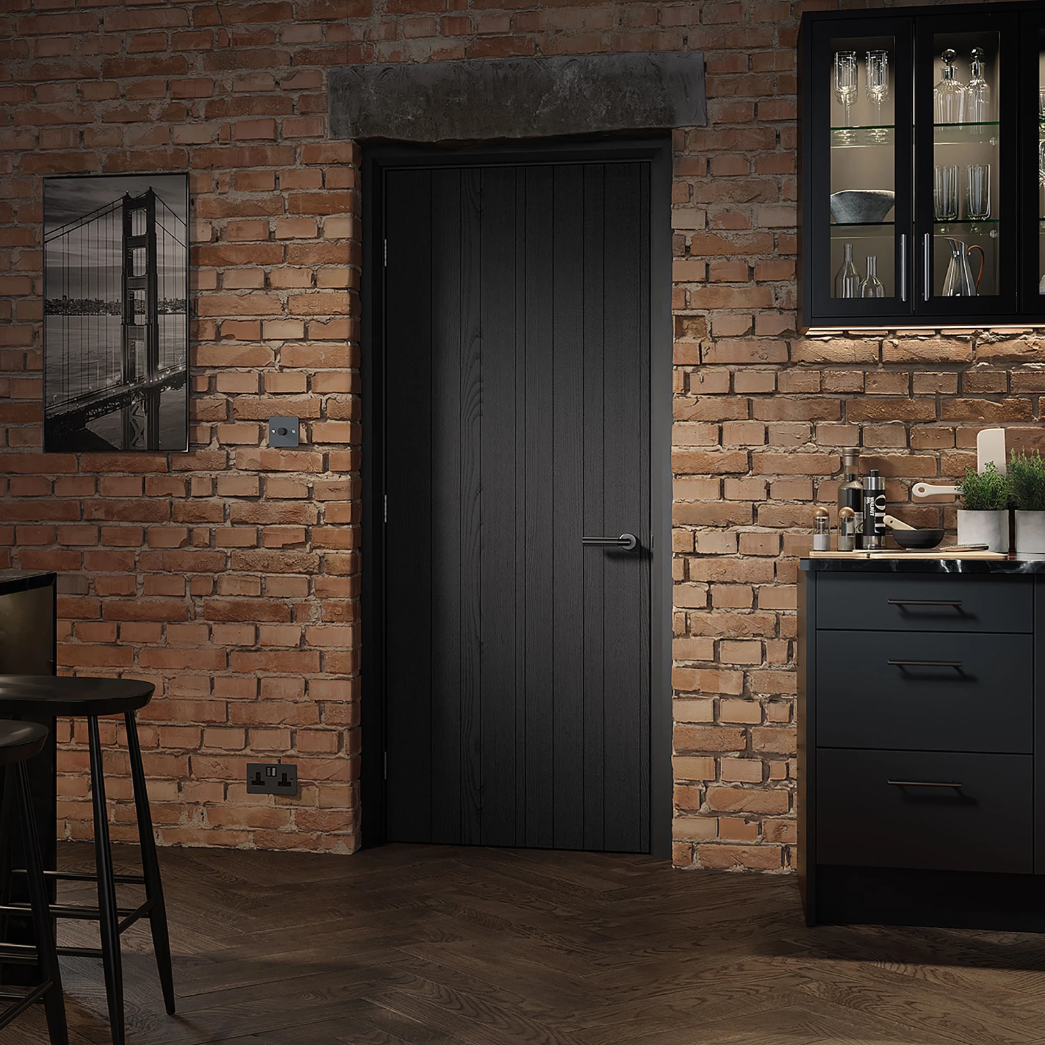 Pre-finished Dark Charcoal, this internal door is a convenient option as it is ready to hang. The Montreal features square cut vertical grooves in a geometric styled pattern. This new styled internal door is a one of a kind and is not one to be missed. Perfect for modern homes, this door is ready to hang and will be a standout asset amongst your interior.