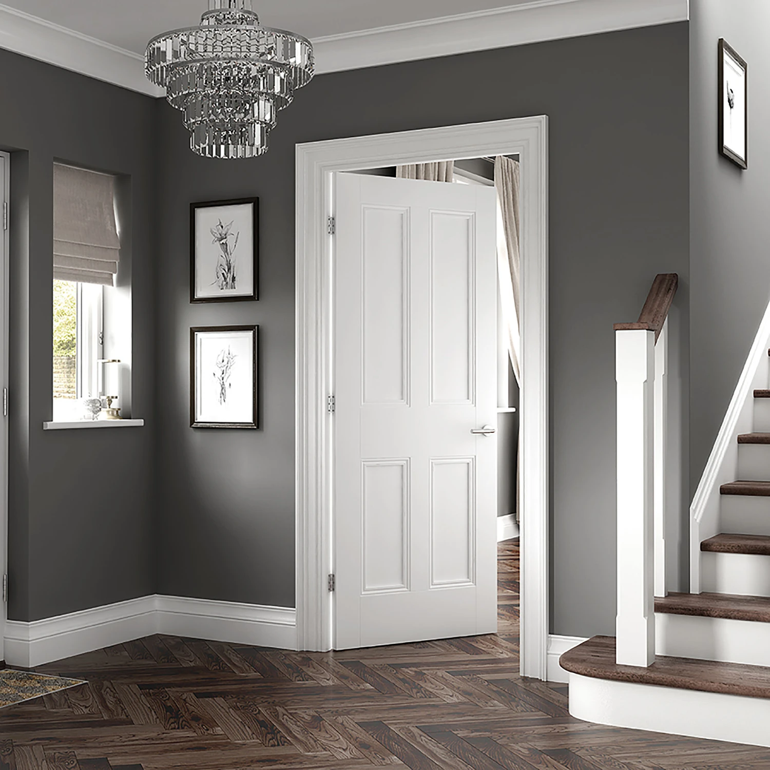 Four rectangular inset shaped panels give this Nostalgia door design a classic look, complete with a versatile white finish.