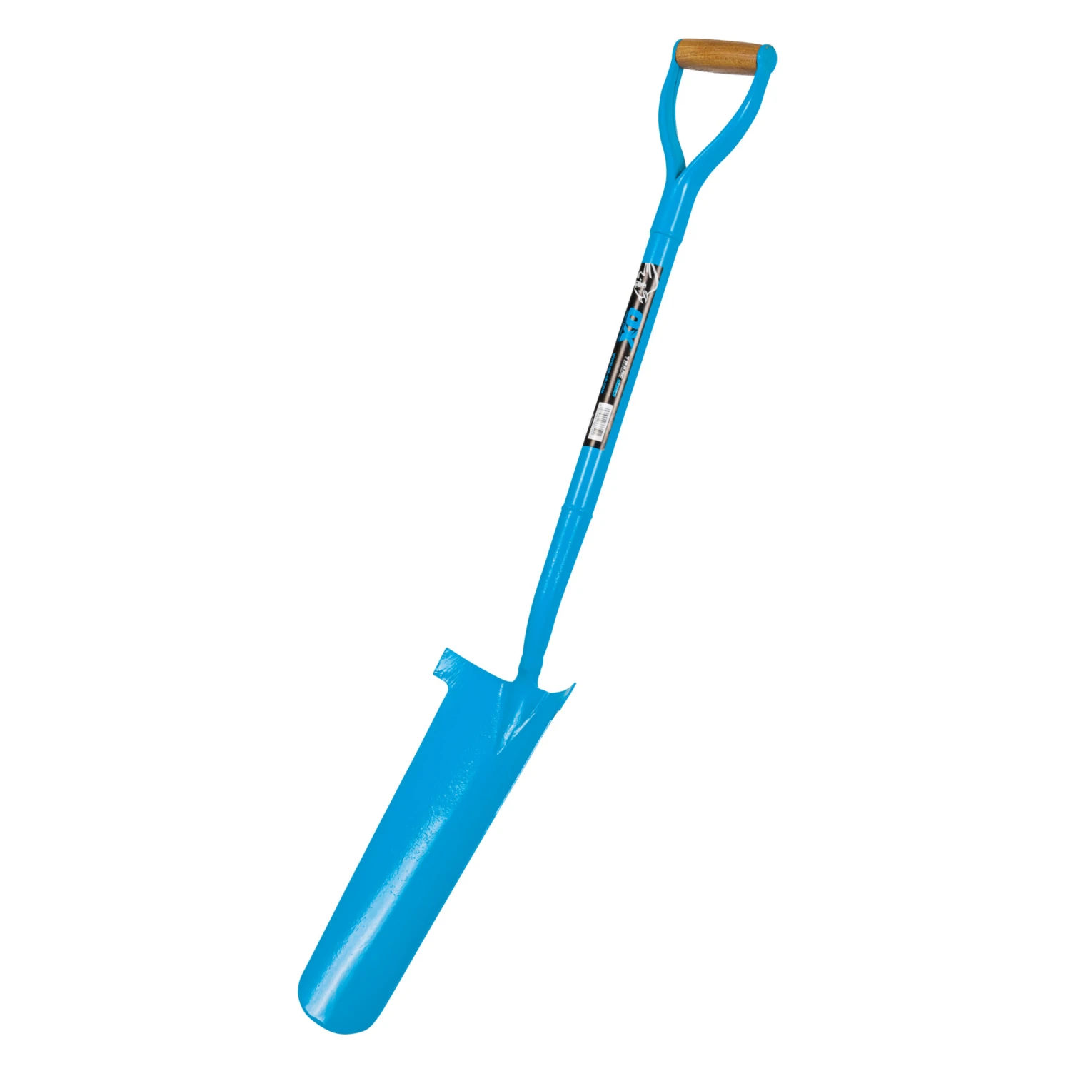 The OX Trade Forged Draining Shovel is a general draining shovel with a long solid forged steel blade and a tapered tip. The shovel is great for increasing the depth of trenches with its long narrow blade, making it perfect for cable work, piping and drain channels. It features a smooth round wood handle that offers maximum comfort, and the Y shaped handle is optimised to fit hands of all sizes. The OX shovel is finished off in the famous OX blue colour and is powder coated to protect it from rust.