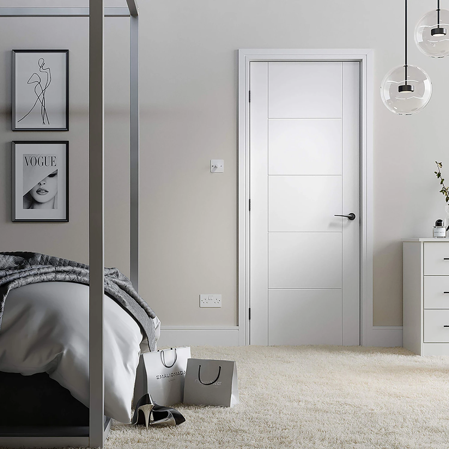The five centre panels of the Vancouver 5P door design create a ladder style effect. This internal door is a modern asset and is perfect for contemporary homes. Primed White, this door is ready for you to finish, meaning it is versatile enough to match all interior. NB: Standard doors supplied semi solid core. Fire Doors are supplied solid core.